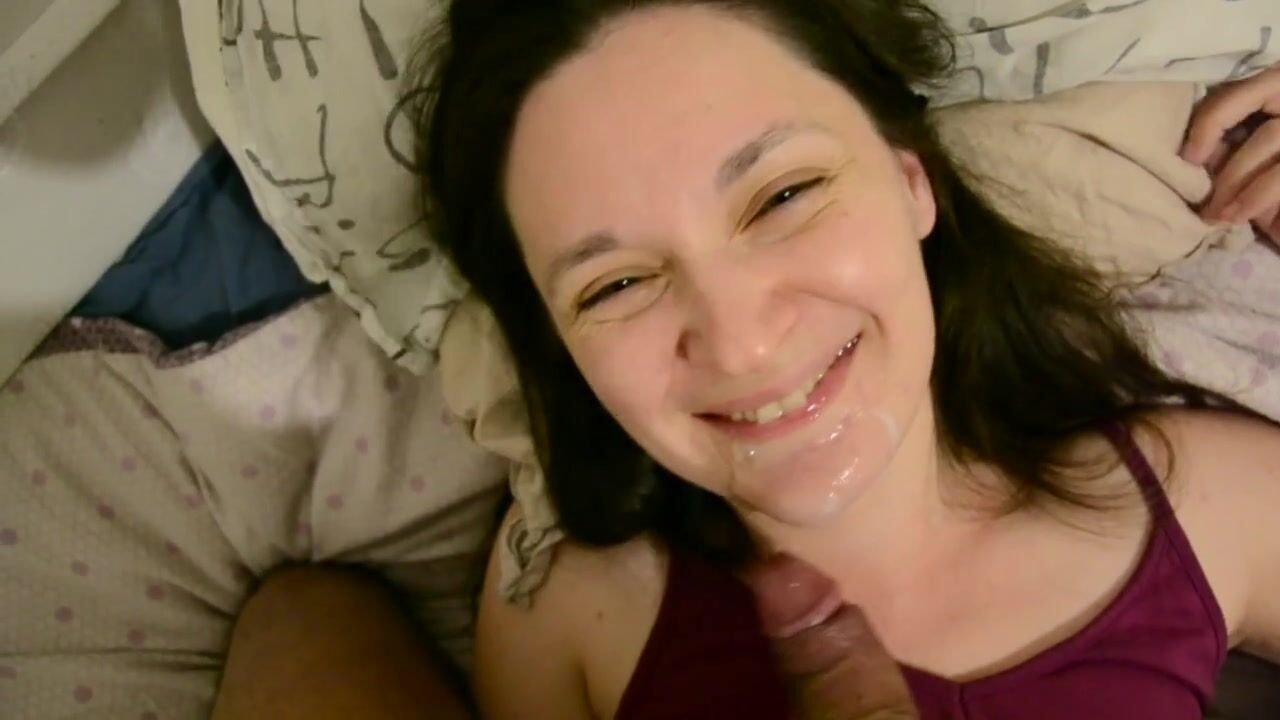 2 ejaculations on the tongue for a pretty brunette with blue eyes