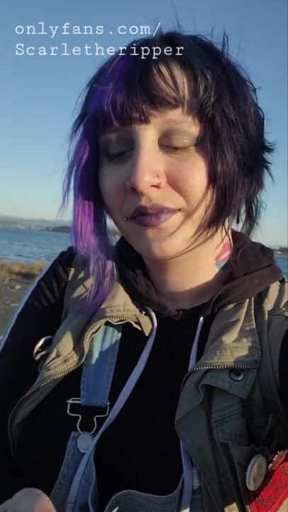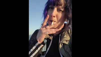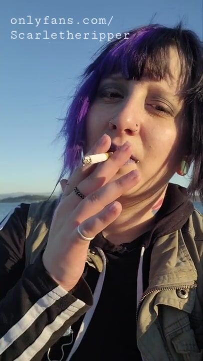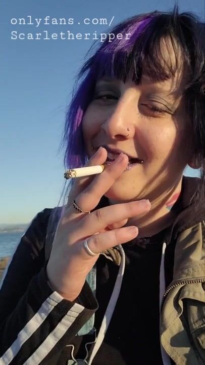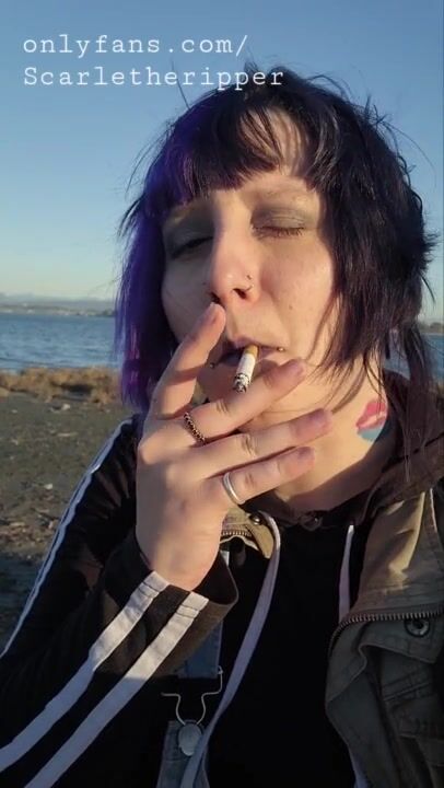 Alternative Girl Smoking Cigarettes on the Beach