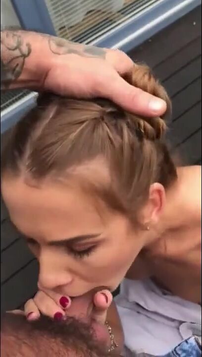Dutch girl with needle pierced tits sucks cock and gets his cum in her eye