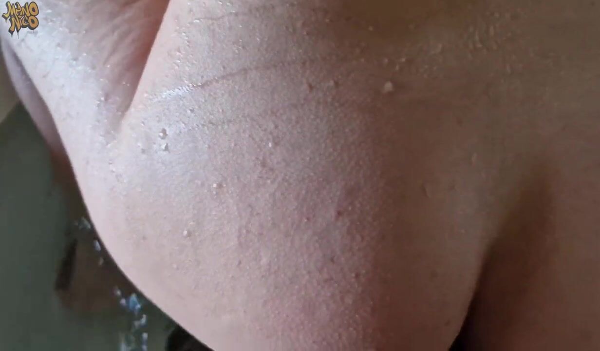 Dutch girl with needle pierced tits sucks cock and gets his cum in her eye