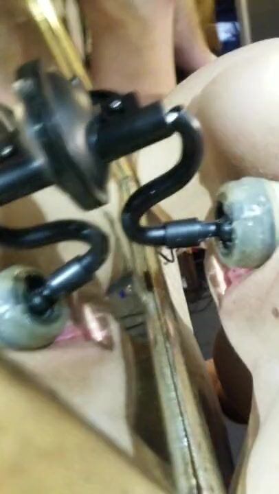 Dutch girl with needle pierced tits sucks cock and gets his cum in her eye