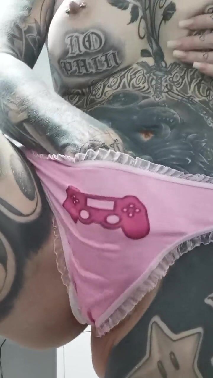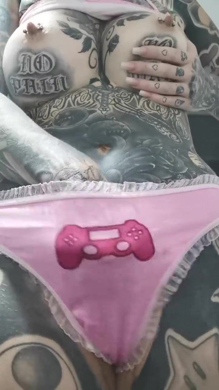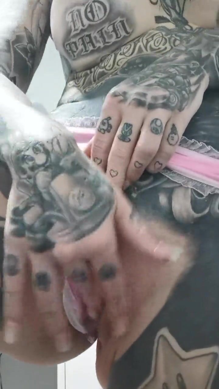Dutch girl with needle pierced tits sucks cock and gets his cum in her eye