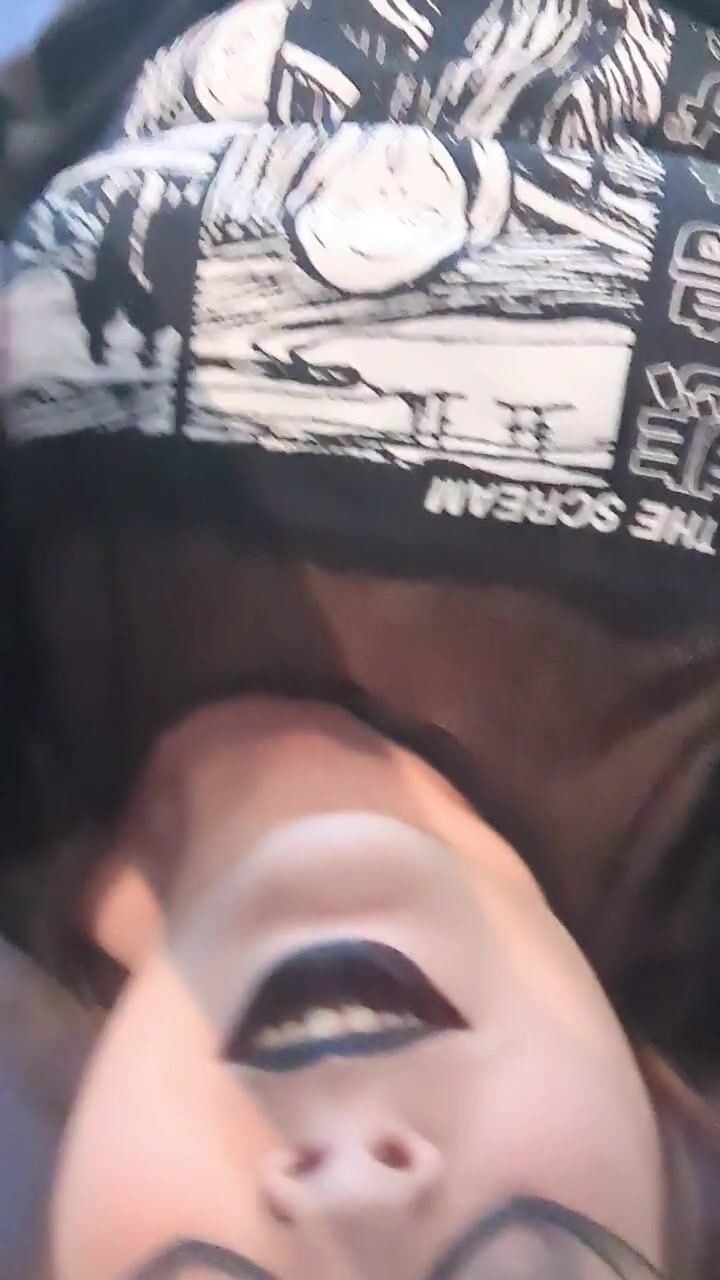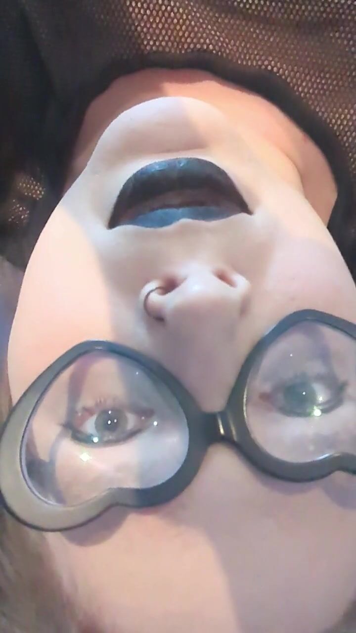 Dutch girl with needle pierced tits sucks cock and gets his cum in her eye
