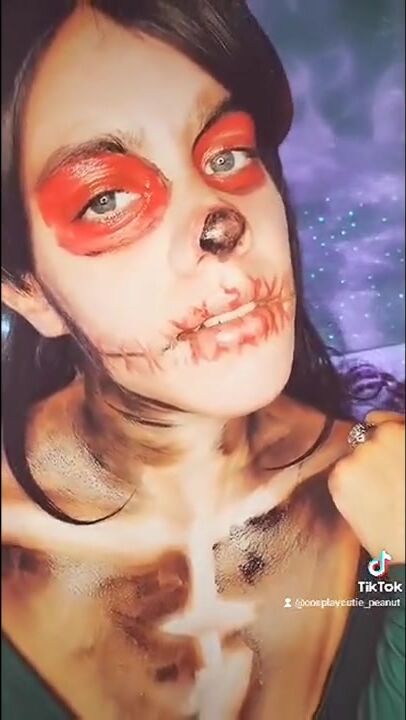 Dutch girl with needle pierced tits sucks cock and gets his cum in her eye