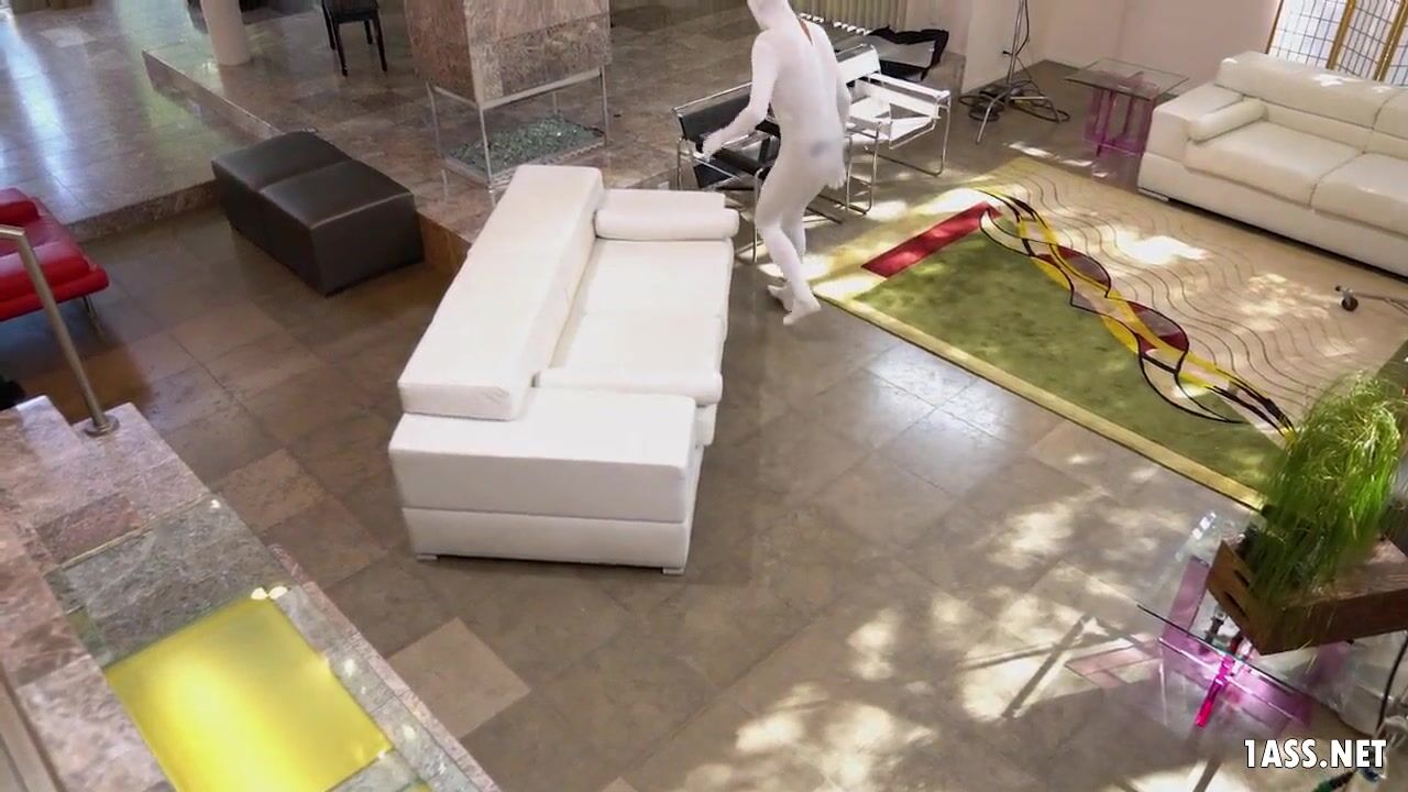 Dutch girl with needle pierced tits sucks cock and gets his cum in her eye