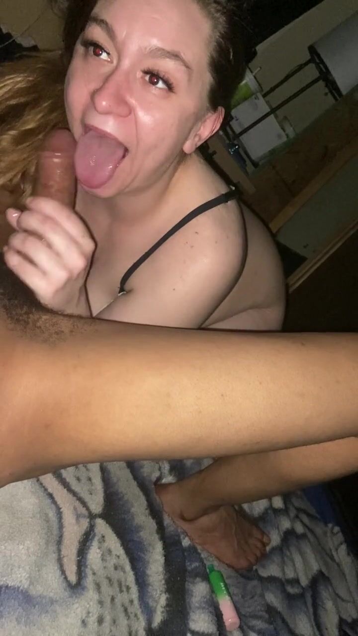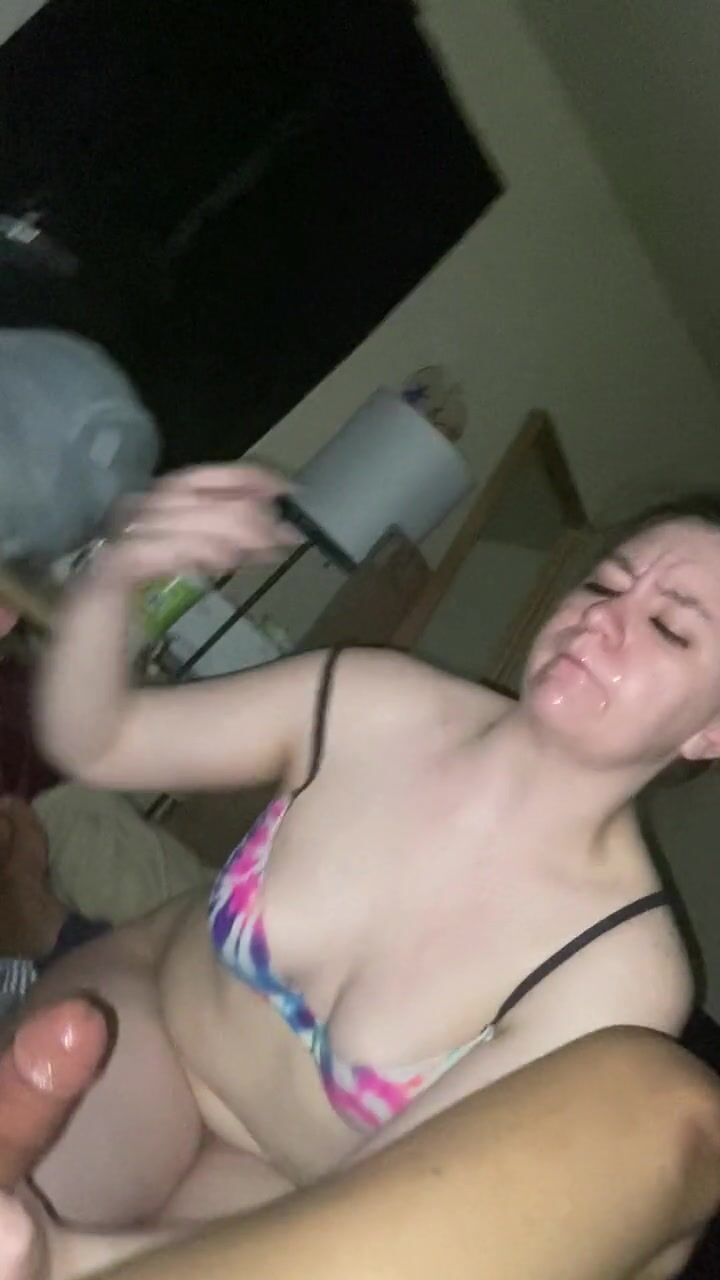 Dutch girl with needle pierced tits sucks cock and gets his cum in her eye