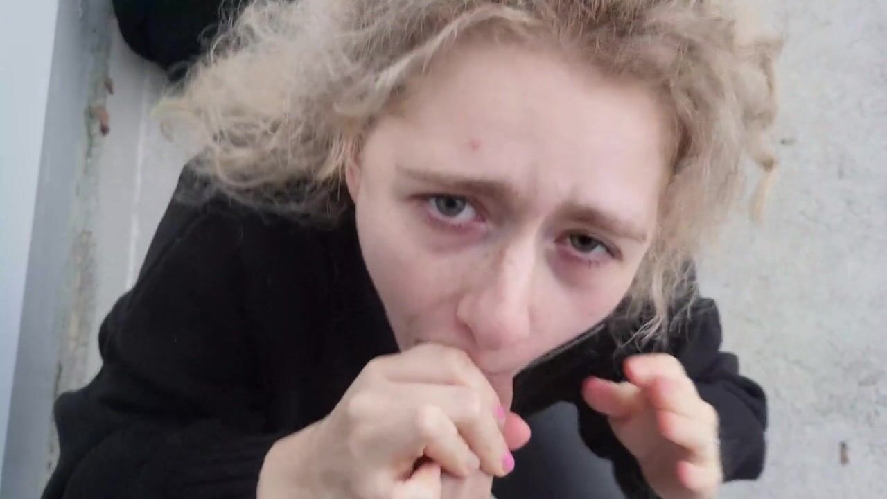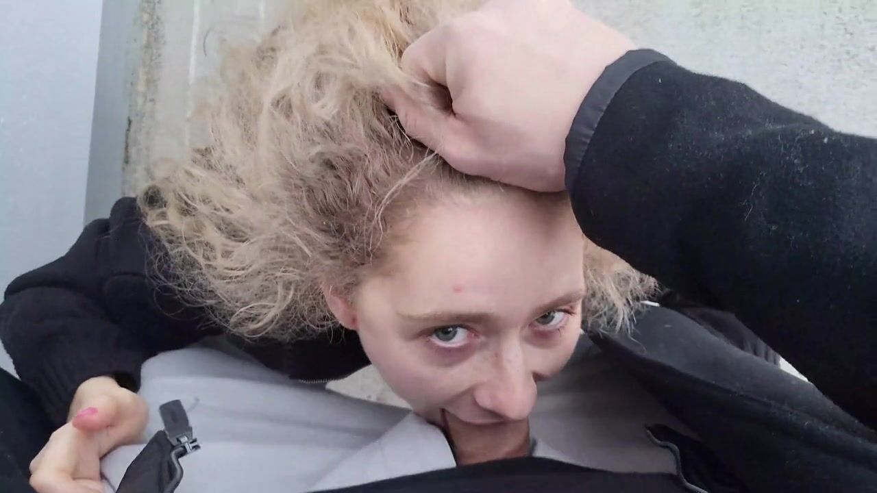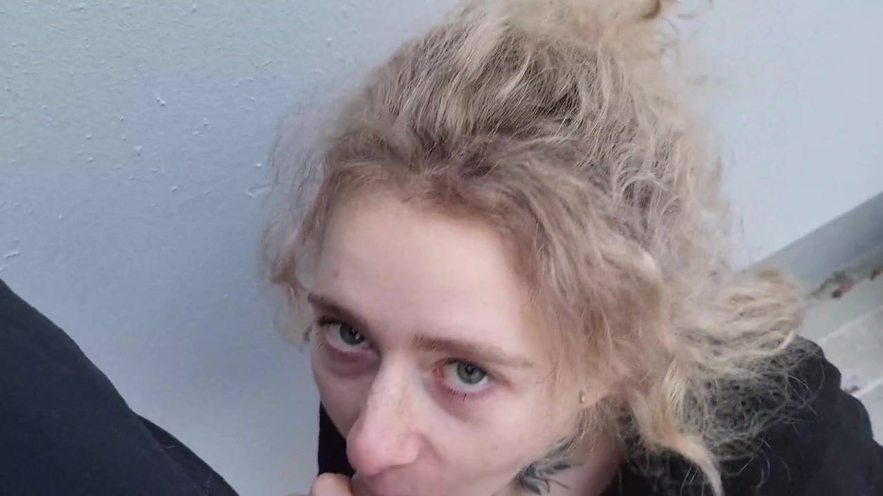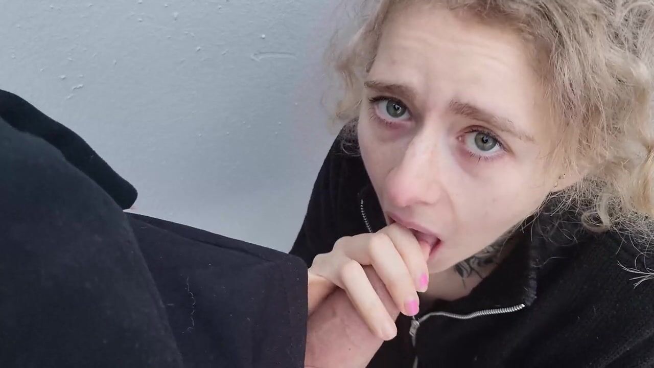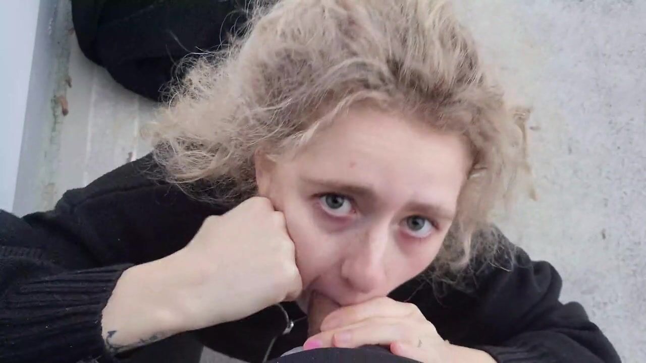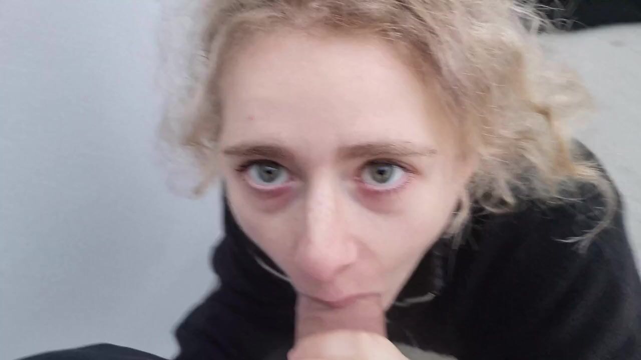 Dutch girl with needle pierced tits sucks cock and gets his cum in her eye