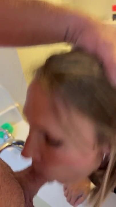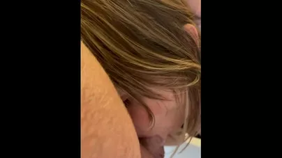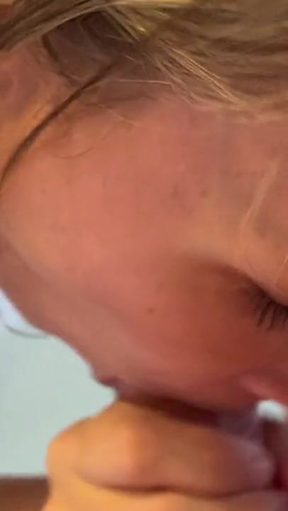 Dutch girl with needle pierced tits sucks cock and gets his cum in her eye