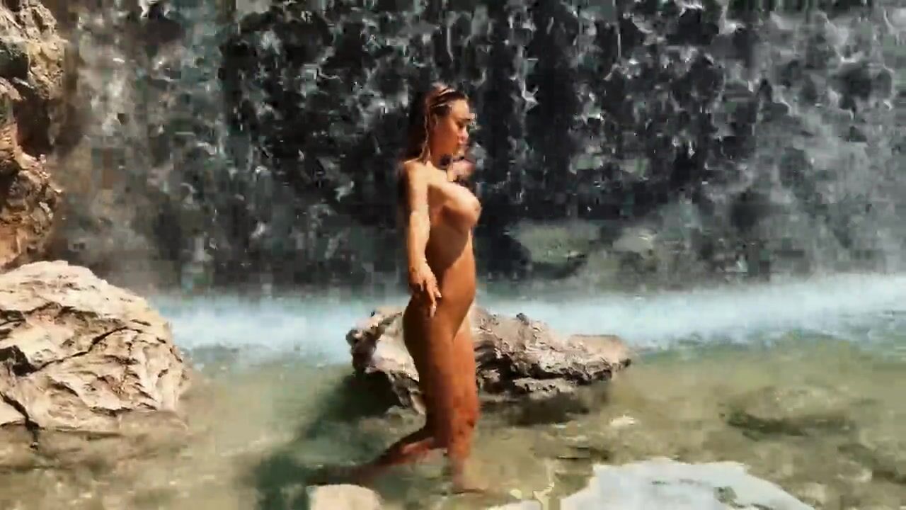 Monika Fox Posing Naked Under A Waterfall