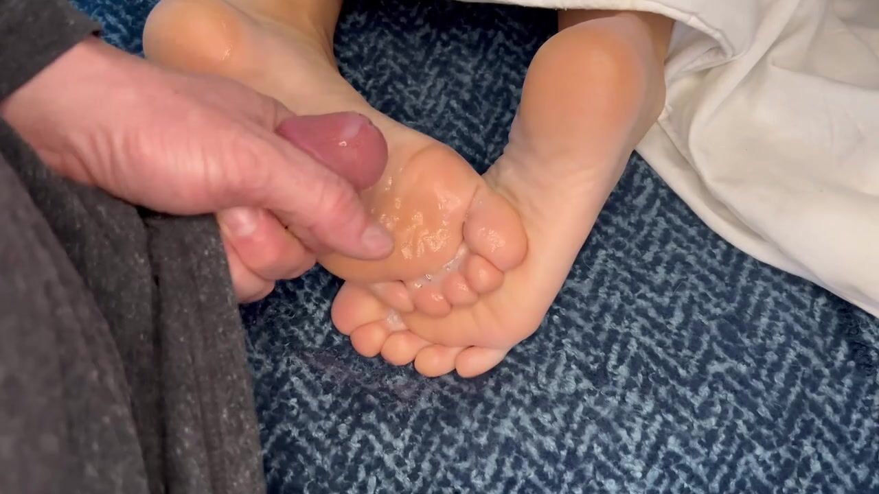 "My Bruno" so elegantly unloads on my soles with a HUGE CUMSHOT!