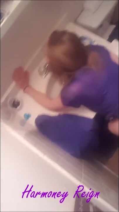 He loves my Handjob in Black Latex Gloves. POV. A lot of spitting on his big Dick....