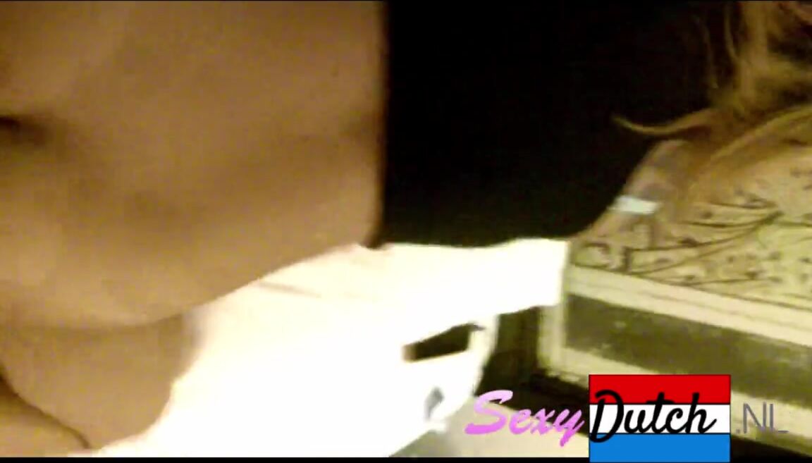 Dutch girl with needle pierced tits sucks cock and gets his cum in her eye