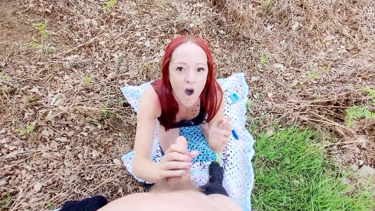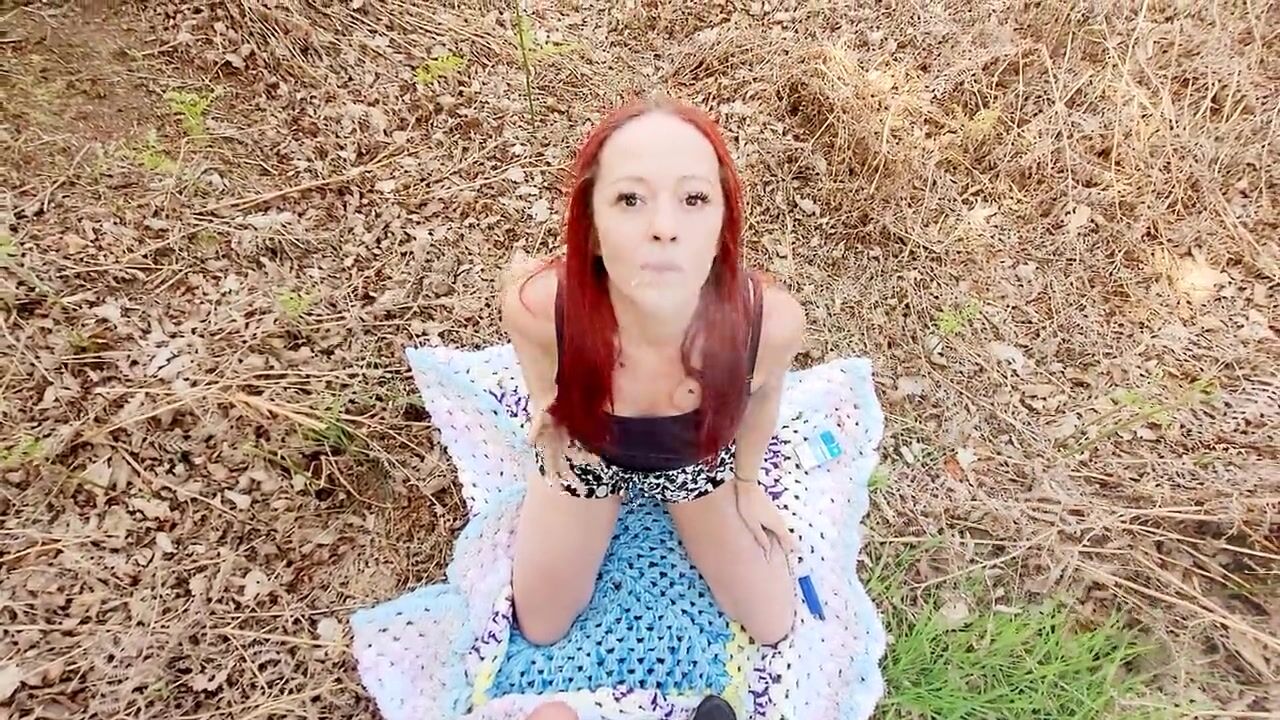 Outdoor forest smoking blowjob and jizz on Kitty's face
