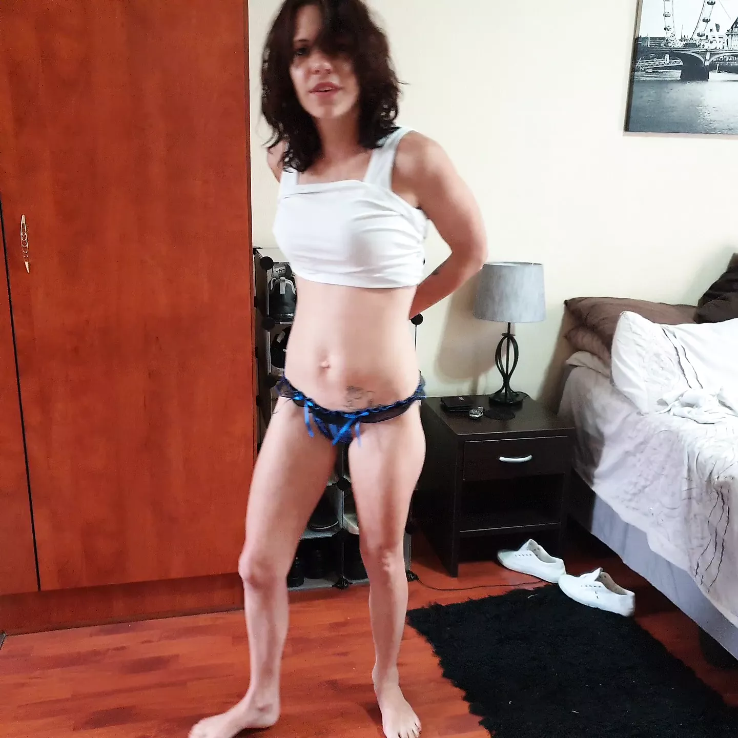 Petite-mia in a sexy lace G-string taking a piss in the toilet