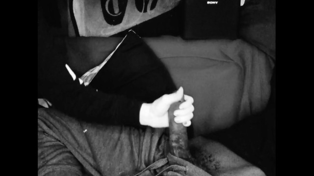 He loves my Handjob in Black Latex Gloves. POV. A lot of spitting on his big Dick....