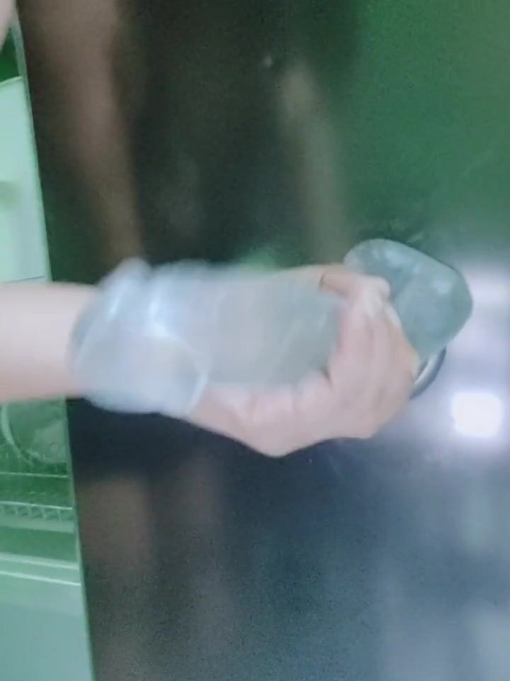 He loves my Handjob in Black Latex Gloves. POV. A lot of spitting on his big Dick....