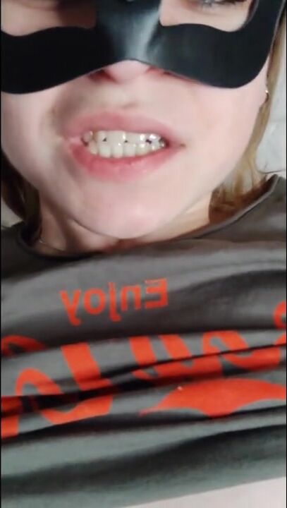 Dutch girl with needle pierced tits sucks cock and gets his cum in her eye