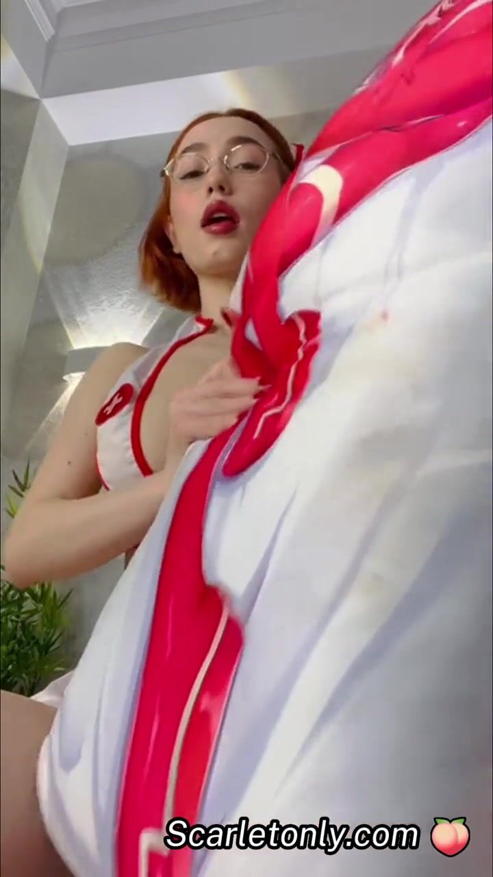 Sexy Ginger Nurse playing with her anime pillow, onlyfans leak