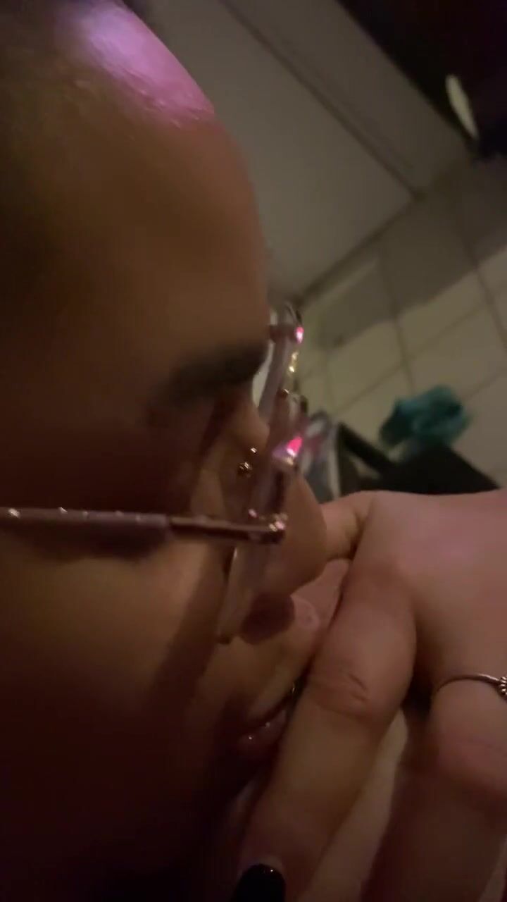 He loves my Handjob in Black Latex Gloves. POV. A lot of spitting on his big Dick....