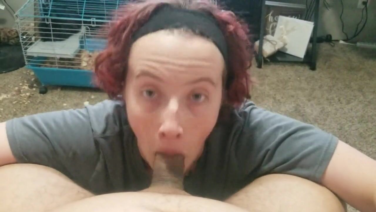 Dutch girl with needle pierced tits sucks cock and gets his cum in her eye
