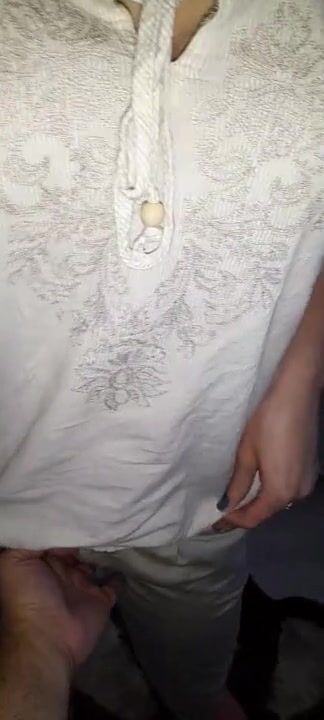 Dutch girl with needle pierced tits sucks cock and gets his cum in her eye