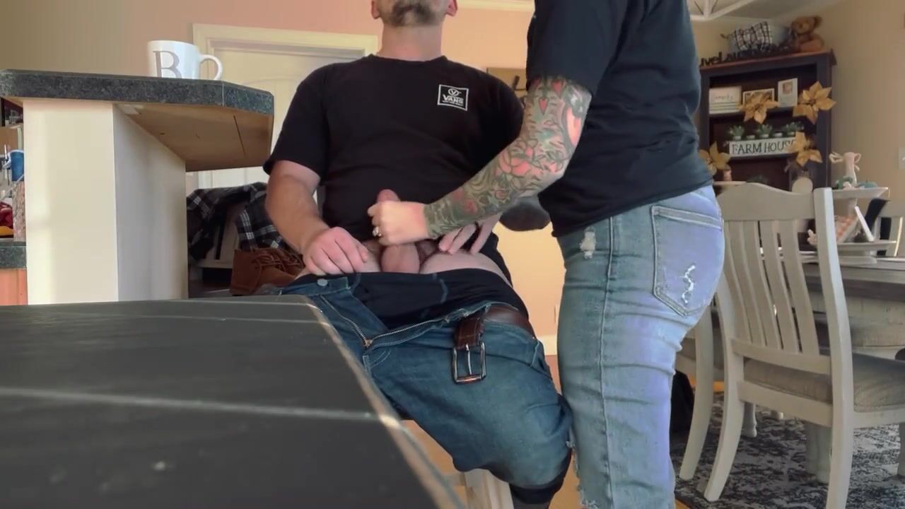 He loves my Handjob in Black Latex Gloves. POV. A lot of spitting on his big Dick....