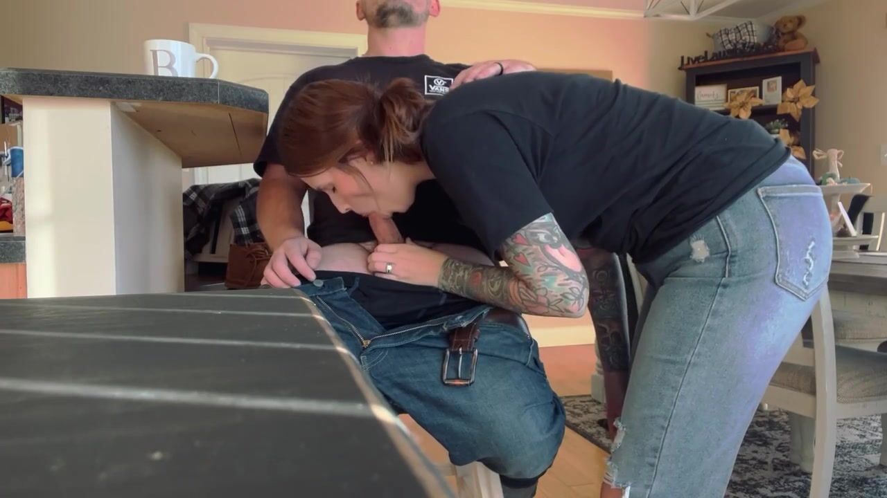 Dutch girl with needle pierced tits sucks cock and gets his cum in her eye