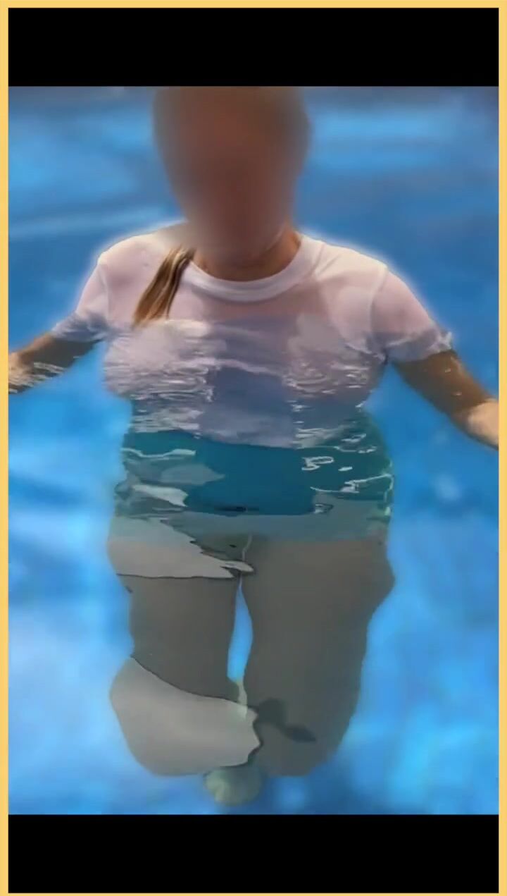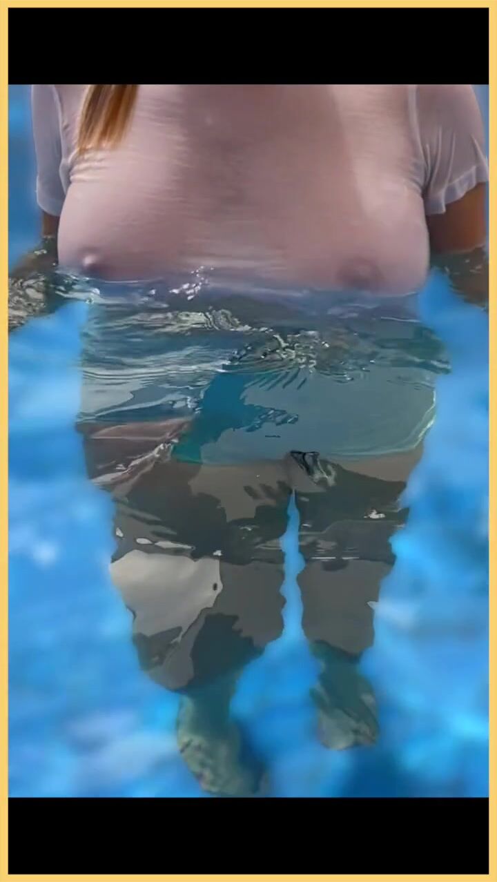 Wifey wet shirt in the pool with perfect braless tits